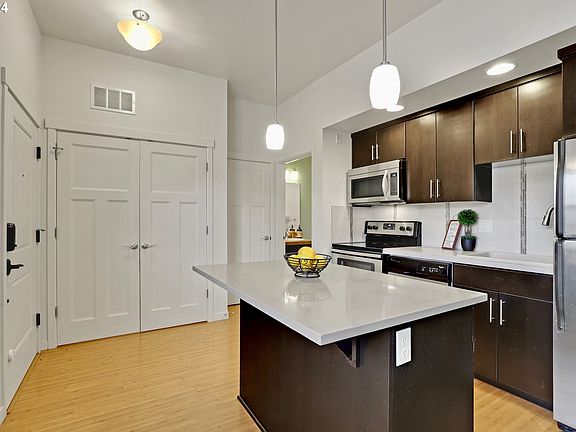 Move in ready studio unit at Lofts @ 45° Central. Builder's model unit with upgrades, custom build wall unit including Murphy bed, desk, storage. Expresso cabinets, SS appliances, quartz counter top kitchen island. Well maintained community, HOA due includes water, sewer, garbage, maintenance, exterior insurance, club house, seasonal swimming pool, weight room & kitchen. One block from Nike World Headquarter & Villa Sports, close to Cedar Hills Crossing Shopping Center. OPEN HOUSE 04/06/2024, SAT, Noon-2PM.
