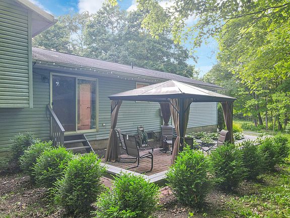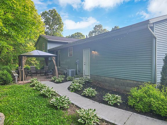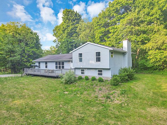 This spacious, Licking Valley school district 4 bedroom home is situated on a secluded 3+ acre lot w/large front deck & paver patio in rear to enjoy nature! Tons of updates over the last 3 years including furnace, a/c, stainless appliances, newer white cabinets, solid surface counters, sink, faucet, back splash & peninsula. Both baths have updated vanities, toilets, wood ''look'' ceramic flooring, & a tiled shower in lower level bath! Also, newer hardwood flooring throughout entire home! Tons of storage in basement which is currently used as a rec room. Washer & dryer set remains w/home. Must see!