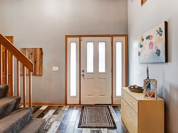 **OPEN HOUSE SATURDAY 9/7 1:00-4:00** RARE 5-bedroom Cape Cod charmer in Leo Schools! Great curb appeal with this cul-de-sac home with professional landscaping. FIVE bedrooms, 3 full baths & over 2,500 SF of living space! You will love the open feel of the foyer with vaulted ceiling & rustic ceramic tile floors. Your eyes will be drawn to the loft area with hardwood railing that overlooks both the foyer and living room. Living room features include wood laminate floors, a stacked stone floor-to-ceiling fireplace, vaulted ceiling & crown molding. Off the living room is a spacious family room with vaulted tongue & groove pine ceiling and walls, a 2nd fireplace with floor-to-ceiling stone, loads of natural light & sliders to the backyard. Like-new kitchen with neutral gray cabinets, brand NEW counters, crisp white tile backsplash, stainless sink, easy-maintenance floors, separate nook with bay window overlooking the backyard AND an additional seating ledge. Master bedroom has fresh paint & flooring and a private en-suite bath. Two additional bedrooms, an updated full bath & laundry area complete the first floor. Upstairs you will find two additional bedrooms, a cozy loft area & those great views of the living room and foyer below. Outside, there is lots of entertaining space with two patios (concrete and paver), a level lot for outdoor fun & games, PLUS, you can hop right on the walking trail behind the home. Newer roof & freshly painted exterior siding within the last few years. Move in & Enjoy!