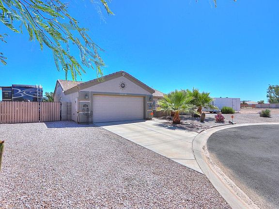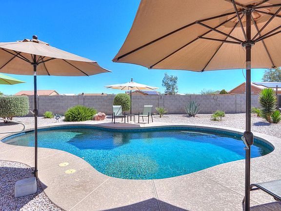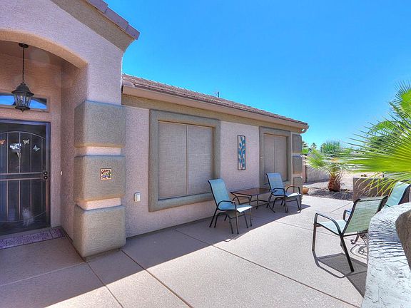 This amazing home is located on over 1/2 an acre in Arizona City! Upgrades galore in this property. Inside you'll find an open floor plan with tile flooring, vaulted ceilings, upgraded cabinetry and granite counter tops. All appliances stay in this lovely kitchen complete with pantry and breakfast bar. Master suite has comfort height vanity with double sinks, walk-in shower, private toilet room and walk-in closet. Outside there is a large covered patio with stained, stamped concrete that has been extended and has a BBQ area complete with BBQ grill, ramada and a view of the cooled and heated pool. This home has RV parking, drip system for the fully landscaped back yard, front courtyard lounging area and newer exterior paint.