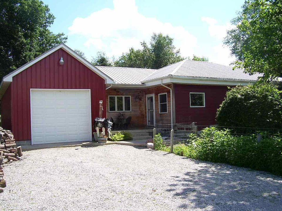 Quiet retreat nestled between lots of trees and flowers!Home totally remodeled in 2008;Furnace, central air, 200 amp, garage, kitchen with granite counter tops and hickory cabinets,windows, metal roof, bathroom with granite counter top vanity, fireplace,deck, walls, light fixtures and more. Home has pond with filter system, grape arbor, storage shed and lots more. Wood burner in living room. Immediate possession. Wood stove is included*Reduced price