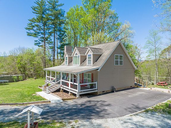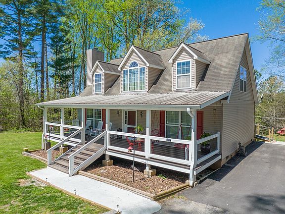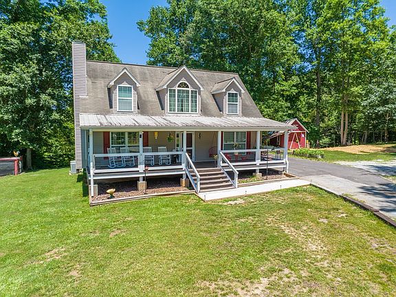 3 Bedroom 2 1/2 Bath home with high-speed cable internet. A large rocking chair front porch just might become your favorite summer evening relaxation destination, although the screened back porch might call you too. The large living room has a stone wood-burning fireplace for those cool winter evenings and is open to the dining area. A breakfast bar divides the dining and kitchen areas which are open and roomy with Corian counters, plenty of cabinets in the kitchen plus a shiplap wall in the dining area. The primary bedroom w/ en-suite has a walk-in shower plus a soaker tub is also on the main level. Also on the main level is a guest half bath. At the top of the stairs is a sitting area or office dividing the two upstairs bedrooms and has a full bath. Paved parking with a raised garden bed along the edge and a koi pond with stack stones and a fountain. The back screened-in porch is wired & supported for a hot tub. The property is set up for an RV or Camper hook-up with water and septic taps. Storage building stays.
