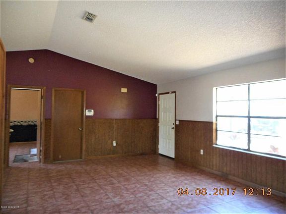 Come check out this quaint home on a double lot in Palm Bay. Property backs up to drainage canal. Features include 3 bedrooms, 2 bathrooms, 2 car garage and a living room/dining room combo. Ceramic tile floors throughout most areas of the home for easy living. Enjoy peaceful evenings, as you step out and relax on the patio overlooking the large back yard. This home is close to schools, shopping and dining and only about a 20-minute drive to the beach.