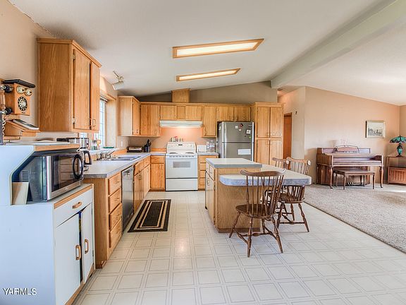 You'll appreciate the beautiful views surrounding this 3 bedroom, 2 bath home with vaulted ceilings and spacious living areas. There is an island in the kitchen with storage and room for stools around the sides. The master bedroom has double closets, a large private bath with a jetted tub and walk-in shower. The front deck has a ramp for easy entry and plenty of room to set up chairs to enjoy your morning coffee. In the back is a storage shed, carport and plenty of room for additional parking.