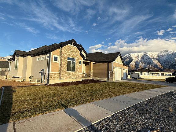 This spacious new home is located in a new neighborhood of Mapleton with lots of parking. No HOA means you can park your vehicles in the garage or on the four car driveway and adjacent gravel parking area. This home boasts a beautiful large master, next room is very large with an ensuite bathroom, third room is still larger than average adjacent to hallway bathroom. There is another large room at the entry area that can be used as a den or front-room etc. There is also an extraordinary large family / dining area which is great for entertaining. This open concept Family, Dining, Kitchen with the extended dining makes for the perfect gathering area with plenty of natural light and mountain views. Lease terms: 6 months to 1 year. You are also responsible for all utilities.