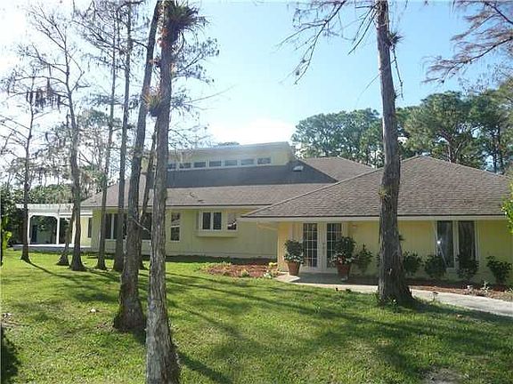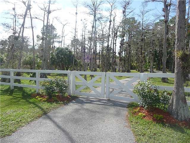 Spectacular Executive retreat situated on over 5 fenced and gated acres in exclusive community ofCaloosa located in Palm BeachGardens Florida! Custom built estate home withstate of the artdesign and special features, such as forced air ventilation system,three commercial grade air handlers,beautiful soaring 20 foot cypress wood ceilings, tile throughout great room withgas fireplace. Chefs Kitchen opens to living area and includes plentyof cherry cabinetry, 2 breakfast bars, center aisle cabinet andvegetable sink, gas range surrounded by chicago brickt and 400 degree heat resistant tiles, commercial grade vent to outside , built in clay wine rack, separate wine cooler, butlers pantry plus walkin pantry, two laundry rooms,, two electric/gas water heaters,. French doors adorn entire back of home and opento huge deck for entertaining and watching gorgeous Florida sunsets! New wood floors in formal entry foyer, new guest bath,separate library or media room with builtins, luxury master suite with new wood floors, separate sitting room or den , 2his and hers walkinclosets,. Luxury bath includes jacuzzi tub, separate shower, water closet with toilet and bidet, double sink vanity, new wood floors! South guest wing features two bedrooms, or bedroom and living room with separate entrance. Guest house ,office or barn off of separate entrance to property, need finishing, plumbes for bath, has air condtioning, own electical panel! Also two sheds for feed and tack or hobbies. Tower for amatuer radio or television, internet, off of the grid. Wiring for generator ro whole house, Prettiest property in this prestigious community of Caloosa with old florida feel! Cypress head in front with special fill and drainage so no standing water, back is full of high pines and old oaks, rare fruit trees of every kind, bamboo, stocked pond feels like you are in your own park! Community features includes equestrian trails, park with equesstrian facilities, clubhouse, tennis courts, playground! Also Caloosa has its own patrolled security. Located between PGA and Indiantown Road with small airport nearby! Close to shopping and beaches, sought after area that is terriific buy right now!