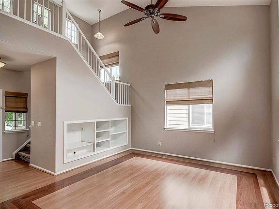 Super cute Patio Home requiring very little maintenance is move-in ready! Special details you will appreciate include the welcoming covered front porch with sitting space, an open floor plan perfect for entertaining guests, wood floors throughout the main level including a beautiful contrasting border design in the living room, an updated color palette on the walls and trim throughout both levels, a quaint sitting area at the top of the stairs, and generous master bedroom featuring a private bath with soaking tub & large walk-in closet. Notice the 42" cabinets in the kitchen which also includes all appliances and a full size pantry closet for tons of storage space. The laundry room comes complete with the washer and dryer set as well as convenient storage shelves & coat/utility closet. The spacious upstairs secondary bedrooms are perfect for family, guests, or home office. Step outside from the eating area in the kitchen to enjoy the cooler, east facing enclosed patio backing to a greenbelt. Relax there on the patio with friends and family a little longer as the grounds maintenance around your beautiful abode is taken care of for you! And we haven't even mentioned the location yet! Walk over to Cherrywood Park and elementary. Close to shopping centers, just minutes to Thorncreek Golf Course and Trail Winds Park & Open Space, and easy access to I-25. Hurry, this one won't last!