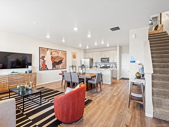 Discover the epitome of modern elegance with this Orchard home at Via Varra in Broomfield. This 3-bedroom, 2.5-bath home spans 1682 square feet of meticulously designed living space. Step into a haven of sophistication, featuring harbor-colored cabinetry that exudes warmth and style throughout. The gourmet kitchen is adorned with beautiful granite countertops and complimented by a chic tile backsplash. Cooking and entertaining are a delight in this thoughtfully designed space. Upstairs, a very spacious loft awaits, offering versatile possibilities for a home office, play area, or additional relaxation space. The primary suite comfortably fits a king-size bed and includes ample closet space. Via Varra is a vibrant community with open space, walking trails, and convenient access to nearby amenities. Don't miss the chance to make this meticulously crafted home yours. This is the model home; furniture is not included and will be sold separately.