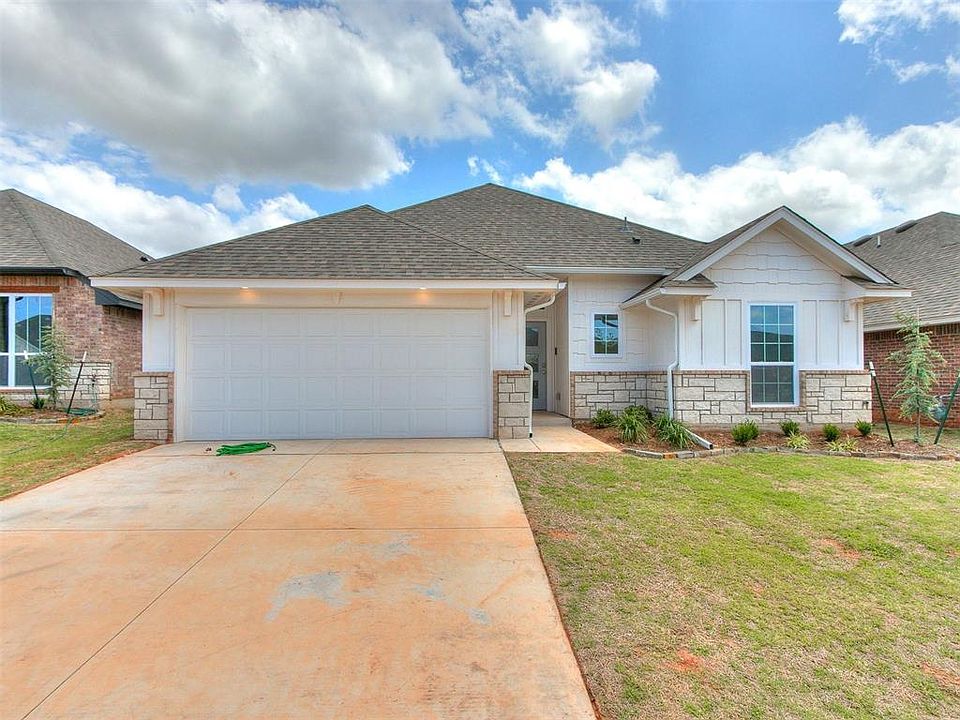 What an exquisite three-bedroom, two-bathroom floor plan! The living room has a cozy fireplace and plenty of room for entertaining friends and family. The kitchen features gorgeous custom wood cabinetry with 36” upper soft close cabinets with under lighting, stainless steel appliances, granite or quartz countertops, a farmhouse kitchen sink, and an island with extra storage. The primary bathroom features a large soaking tub and a separate tiled shower. The utility room even has a luxurious feel with a charming window, cabinets and built-in shelves. The long covered back patio is perfect for enjoying a cup of coffee in the morning or ice tea in the evening. This elite plan also boasts an 8/12 roof pitch, stone work on the exterior and an upgraded landscape package!