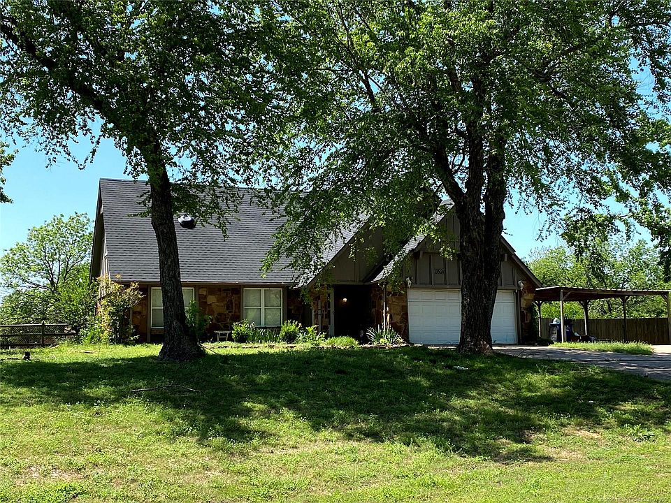 Stone two-story ready to make your own on almost 3/4 acre lot w/mature trees. Master down with three bedrooms upstairs. Fourth bedroom could be game room with extra bonus room for office/play room. Open floor plan downstairs. Formal dining or office w/French doors off entry. Extra driveway parking for cars and 2 car carport. Living is open to dining area and kitchen. Easy access to Bixby and South Tulsa conveniences. New roof shingles installed this spring 2020.