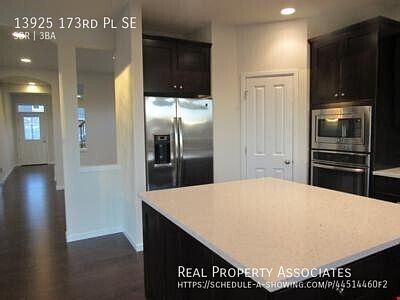 - Beautiful Brand New DR Horton's home in Heritage Estates! - 3-Car Garage. 5 bedrooms, plus bonus room. 1 Bedroom on main floor and a 3/4 bath on the main level - This home has a formal living area, dining room and large great room off the kitchen - Stainless steel appliances in the gourmet kitchen with extraction hood vent, tons of hardwoods - Granite slab in the kitchen with under-mount sink - Enjoy your backyard all year from the comfort of your covered patio - Fenced large Back Yard. Corner lot. Issaquah Schools! Briarwood Elem, Maywood, Liberty High - Pets case be case with deposit. Pre approval required before you apply. Renter's legal liability insurance is required and part of the Benefits Package ($30 monthly). If qualifying legal liability insurance is purchased and provided by tenant to RPA, the benefit package can be reduced to $15 monthly for reduced benefits or waived upon request. Bonus Room Gas Fireplace Stainless Steel Appliances. Three Car Garage Vaulted Ceilings Wood Floors