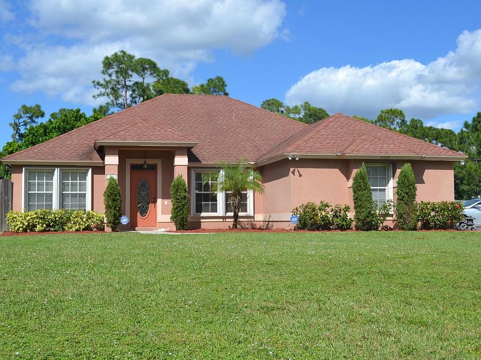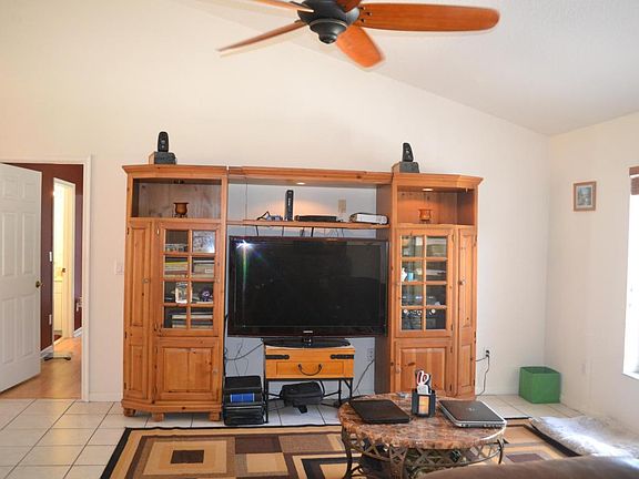 4 Bed 2 Bath 2 Car Garage Pool home on 1+ acre! CBS, accordion shutters & Generator! Great lay out Tile & wood lam flooring, formal living & dining rooms, kitchen breakfast bar open nook & family room, pantry, all appliances included gas stove & water heater, split bedroom plan, roman tub & sep shower, laundry rm, security system motion & glass sensors, covered screen patio 24 x 14, freeform inground salt pool with cascading spa & color wheel light,child safety pool fence, shed, 2 separate RV hook ups 50 amp service both sides house, fully fenced 1.15 acre lot,small dog run area, chain link & Privacy fenced back yard double culverts, generac generator, buried gas tank leased, Newer items: 2008 Roof & A/C, 2013 new Pool pump & Water softener system, 2011 Dishwasher & Refrigerator