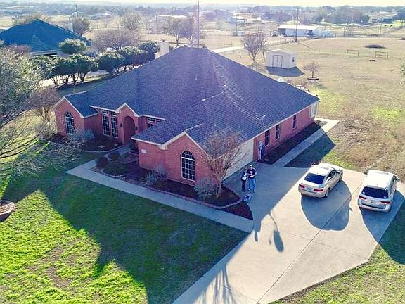 Come enjoy the quiet country living and the convenience of city amenities only minutes away! This immaculately kept and well maintained home sits on 2.5 acres. Picture the perfect place to entertain with a large covered patio, sparkling saltwater 18,000 gallon sports pool & a million dollar view! A separate fenced 1 acre portion of the property is perfect to bring your horses or livestock! Enjoy a fully finished 24x30 Shop with satellite hookups & full electricity that sits on an extended concrete slab. Enjoy the benefits of well water and no water bill! A private solar powered gated entry and wrought iron front fence. Perfect location for those who travel to Dallas or Downtown Fort Worth.