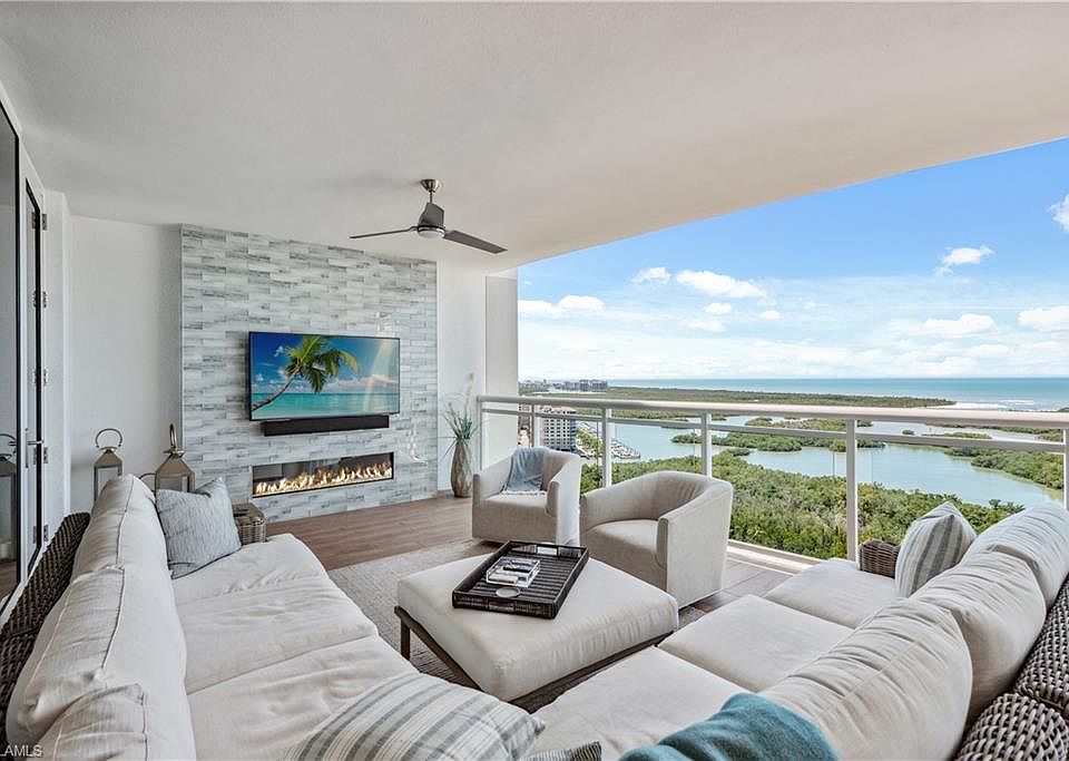 Kalea Bay's 20th-floor unit in Tower 200 presents an unparalleled blend of luxury, comfort, and breathtaking views. This exquisite property, showcases an abundance of wood work including ceiling and wall details. 2002 offers four elegantly appointed bedrooms, each a serene retreat promising privacy, rest and relaxation. The designer furnishings are included with home and are professionaly chosen to enhance the finishes. Upon entering you are immediatley wowed by the view out of the Floor-to-ceiling windows, inviting natural light to illuminate the interior. The open-concept design encourages a fluid living experience, from the outdoor oversized lanai to the gourmet kitchen, equipped with state-of-the-art Wolf® and Subzero® appliances including wine cooler and steam oven. A large butler’s panty includes a second dishwasher and an abundance of storage. The master suite is a sanctuary of luxury, with walls of glass and the incredible view as your backdrop. Spa like bathroom with dual vanities, a soaking tub, and a separate glass-enclosed shower, all designed with the finest materials. The additional en-suite bedrooms, offers incredible views of the soon to be completed golf course. Residents of Kalea Bay enjoy exclusive access to a wealth of amenities, including rooftop pool and fitness center. Five-star amenties in your backyard with The Club at Kalea Bay . This 20th floor condo at Kalea Bay represents a rare opportunity to own a piece of Naples' luxury waterfront living, where every detail has been carefully curated to offer an unmatched living experience. Whether basking in the glow of the sunset from your private Lanai or enjoying the community's rich offerings, this property promises a life you dreamed about.