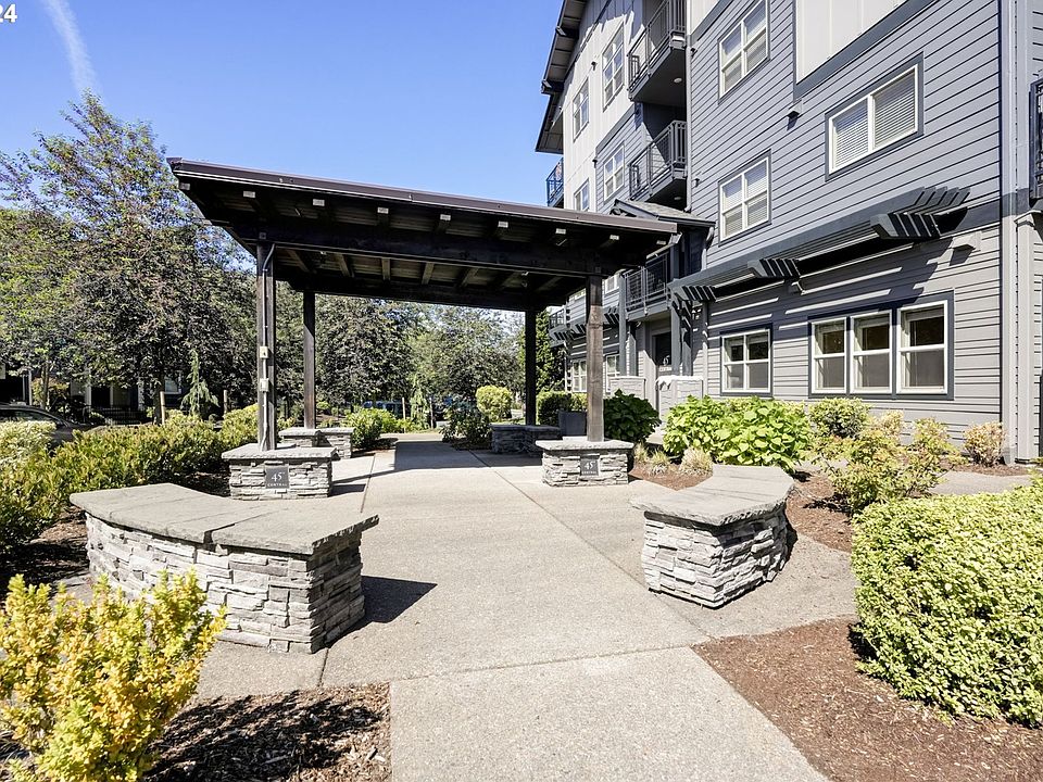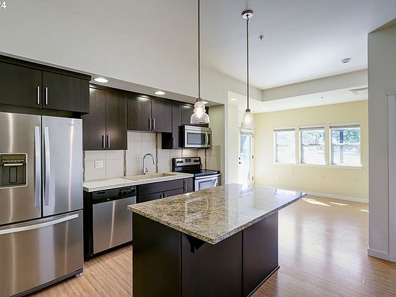 45 Central is a prime location in the heart of central Beaverton. Spacious open and bright one level great room floor plan with a wall of windows overlooking the beautiful courtyard. The well equipped kitchen with a large island is designed for gatherings. Generous primary bedroom with a walk-in closet provides plenty of storage. Convenient laundry closet with washer & dryer included. Private covered patio accessed through the living room is ideal for year-round entertaining. Designated parking space plus ample guest parking. HOA includes exterior maintenance, landscaping, water, sewer, garbage and access to the Club House with pool & gym. Excellent location, close to Villa Sport, Nike WHQ and Cedar Hills. --