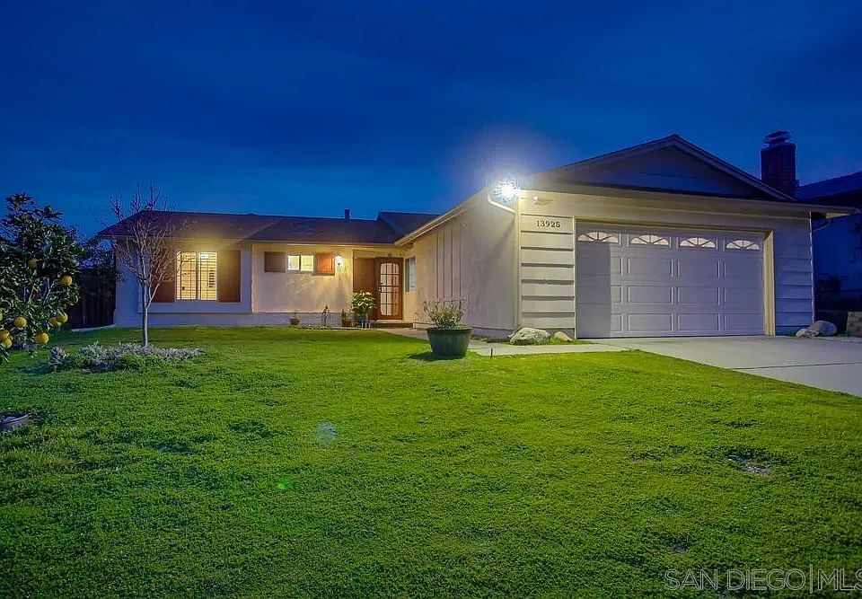 SELLERS WILL ENTERTAIN OFFERS BETWEEN $799,000-$875,000. Welcome home to this single story Poway home with OWNED SOLAR, a pool and views perfectly situated on a private and quiet cul-de-sac! This beautiful home is perched up on a hill giving way to beautiful mountain views and gorgeous sunsets in the distance. The kitchen has brand new beautiful quartz counter tops! This well maintained home has owned solar, a pool in the back yard, a two car attached garage and fruit trees including cherries, grapefruit, pears, oranges & loquats, There is also a garden in the backyard as well, perfect for growing herbs. Located near the top rated Poway Unified School District. Only an 8 minute drive to Poway High School.