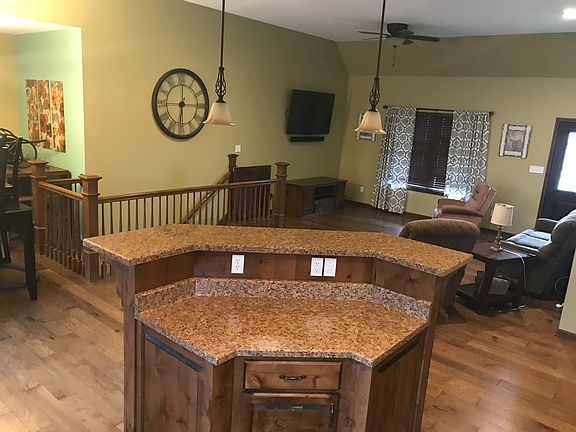 This breathtaking custom home likely has EVERYTHING on your checklist: main floor master suite, spa-like master shower, open kitchen/dining/living space, gorgeous main floor hardwood, custom kitchen cabinetry with amazing features, main floor laundry, central vac, 6 acres, convenient drive to main highway, two garages, maintenance free brick construction, ground source heat, level lot, surrounded by trees! Stunning views! Make this home your new hide-away! Additional features: rear deck is beautifully stamped cement; cement room off of basement garage could be modified for use as a storm shelter or gun safe. Buyer's Agent to verify all measurements and square footage totals. Measurements listed were performed with an electronic measuring device and are approximate