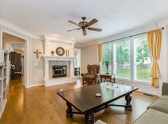 This 2 story in Shawnee will knock your socks off! Beautiful details throughout like hardwood floors, impeccable millwork & crown molding in the living room, entry w/ 18' ceiling & new spindles, bay window & hutch nook in the dining room, see through living room/hearth room fireplace, and so much more! The finished basement was built for entertaining w/ its large wet bar, billiards area, media room, full bathroom, and even built-in surround sound! Backyard can easily be fenced in & has a newer Trex deck.