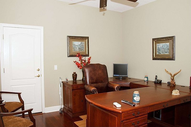 Set on a stunning canal-front site with spectacular views of Lake Speer! This custom built home is just perfect for anyone who desires the peaceful, water setting offered by this elegant home in the desirable gated community of Eden Isle. Boasting 4 full bedrooms & 4 baths, plus a separate den/office space & large bonus room with 2 walk in closets that could easily be used as as a 5th bedroom, second master or in-law suite, this spectacular home provides ample room for any size family! As you approach you are greeted by attractive and carefully manicured landscaping, enhanced by a spacious covered porch. Step into the entry and enjoy the tastefully decorated formal living and dining room areas finished with Venetian plaster ceilings and Brazilian Cherry hardwood floors. The room is flooded by warm, natural light from the beautiful French doors that invite the outdoors in. The kitchen is a cook's delight! Highlighted with stunning solid surface counter tops, 42" cherry cabinets with crown molding & raised panel doors, tiled back-splash, and breakfast bar- all overlooking the large, comfortable family room finished with high end, neutral ceramic tile, custom window treatments and accent wall with custom, stone finish. The master suite and master bath provide you with a spa-like retreat. Complete with tile garden tub & separate shower as well as split, dual vanity. Relax on your screened lanai and embrace the breathtaking views of the deep, freshwater canal and glistening Lake Speer. HOME WARRANTY!
