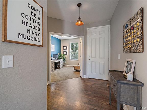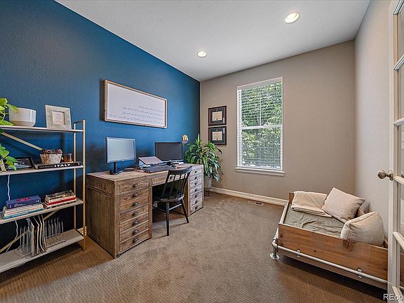 This home perfectly blends style and comfort where every detail has been thoughtfully crafted for an enjoyable lifestyle. The formal entry welcomes you into the home offering a desirable open concept floor plan. The office at the front of the house is nicely situated away from the rest of the living spaces. The living area is a wonderful conversation space to entertain and enjoy friends. The bright family room with fireplace is adjacent to the dining area and kitchen creating a wonderful great room concept for daily living. A bright kitchen with island and stainless appliances will certainly be appreciated by the chef of the house and allow meals to be prepared while being connected to family and friends. The primary bedroom is quite spacious with en suite and an expanded walk-in closet. There are two more bedrooms on the upper level with guest bath. What was originally the fourth bedroom has been turned into a very enjoyable loft style/media area. The laundry room is conveniently located on the second level. The basement is unfinished but as you can see from the photos it makes for an amazing home gym area should you desire to use that space for a workout area as well. This would also be a great play area or craft space. The backyard is enhanced for entertaining with a creative deck space that incorporates a sunken lounge area. There are also foothill views to be enjoyed while entertaining or relaxing outside. The southern facing driveway is very nice to have for those snowy days. The location provides easy access to I-70, I-25, and C-470. This makes for great access to shopping, restaurants, and the mountain towns for summer and winter fun.
