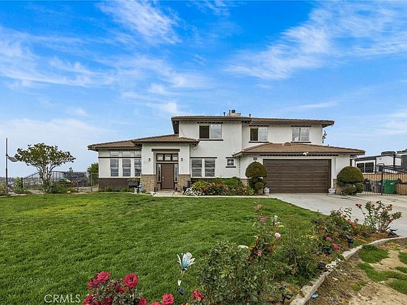 There is a difference between seeing a home that is charming and beautiful from seeing one that opens your eyes, opens your heart and makes you feel WOW. This home is the latter. A mind-blowing horse property boasting 270-degree panoramic views of the city and mountains set on the corner lot of a cul-de-sac, with over an acre of land in a serene equestrian community. This home offers breathtaking views, tranquility and privacy. Take a moment the front lawn and enjoy the beautiful scents of David Austin English roses. Entertain your friends and family in style, with a resort-style backyard with a stunning swimming pool, waterfall and an expansive low-maintenance patio that extends through most of the backyard, and offers a BBQ island, gazebo, a fire pit that looks out over the romantic sunsets and city lights, and a secure gated side yard that creates plenty of storage for boats and RVs. Host an impressive pool party, with a rustic stone path leading to an elevated pad where refreshing waters offer fun in the sun, a tanning ledge keep things cool, and a cascading waterfall. The interiors are bright and airy, with plenty of natural light everywhere inside of this 2670 SQFT home featuring 3 bedrooms and 4 full bathrooms. A luxury vinyl plank flooring throughout that brings warmth and taste. Transom windows in the formal living and dining room draw in sunshine, and soaring ceilings create a feeling of spaciousness. An open concept family room has ample space, crown moldings, and a cozy gas fireplace, with a casual dining area connecting to the kitchen, where clean white cabinets create a place to gather, and French doors open to the backyard for fun summer BBQs. One garage space is converted to storage room with permits and has a wall AC installed for the space to be used as a guest house with full bathroom next to it. There is a room to the right of the foyer on the first floor that can be used as the perfect home office or an additional bedroom with full bath. Upstairs features a spacious loft area with gorgeous view. The master bedroom and two additional bedrooms are located on the second floor. The master bedroom has large windows looking out the backyard pool with views and features walk-in closets and entirely upgraded bathroom with luxury flooring, soaking tub and vanities. With a 50,000 SQFT lot, this home has the potential for expanding interior square footage or adding even more exterior upgrades. Come and see this home today!