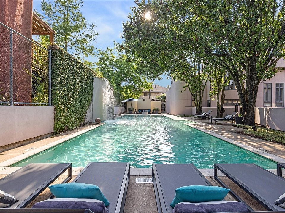 Arlington Court is a quaint gated townhome community in the heart of the Heights designed by the renowned architect William F Stern. Two blocks from the Heights Blvd Trail; walk to nearby shopping and restaurants. Upon entering, you will be greeted by a light filled living area featuring a gas fireplace, hardwood floors and double height ceiling. Continuing to the second floor, you will pass a hall bath before entering the galley kitchen and spacious dining/flex area with balcony and room for a dining table and desk area or workout space. On the third floor, you will find both bedrooms. The primary bedroom has an ensuite bath with two sinks, a balcony overlooking the serene courtyard, built in storage and a walk-in closet, The secondary bedroom uses the hall bath with a stackable W/D. The grounds are shaded by mature trees and the community pool is a relaxing oasis. There is an attached two car garage with additional storage accessed from an alley. Water is included.