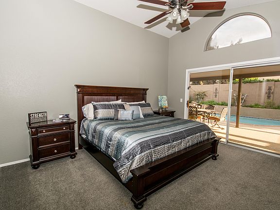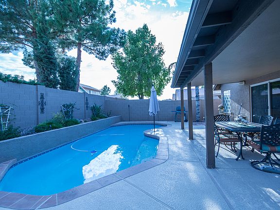 Beautiful home with backyard oasis. Move in ready, easy living. Down the street to large park and close to Province Park. Lush trees and landscaping in the community. Contemporary paint and grassy front yard welcomes you home. Plantation Shutters, dual pane windows, two-tone paint. Vaulted ceilings make it feel light and open. Professionally installed interior surround sound and outdoor speakers. Tile throughout, and nice carpet in the bedrooms. Modern lighting. Walk in closet in the master. Backyard is private with extended 8ft wall and landscaping by design. Refreshing pool and large exterior patio that is the full length of the house. Patio roof new 2014. Landscape lighting installed in the front & back. New pool pump & sand filter 2014. New water heater 2014.