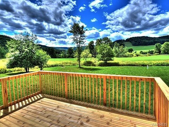 Beautiful Town of Allegany, NY home in a quiet country setting on just over one acre of land. Enjoy your morning coffee on the newly constructed back deck that overlooks the gorgeous rolling hills of the Enchanted Mountains. During the colder months you can get cozy by the wood burning fireplace. This home features a very large eat-in kitchen that is great for entertaining or fixing meals for the family. Just off the kitchen there is an office with a built-in desk and cupboards for lots of storage. The Master bedroom boasts a giant walk-in closet and en-suite with jacuzzi soaker-tub and a separate shower. This home has a terrific open floor-plan that includes large closets and washer and dryer hook-ups in the mudroom with additional storage. This manufactured home sits on a Superior fully insulated foundation and provides a crawl space. This is not a double wide and it has drywall throughout. Very motivated seller that will consider any and all offers!! Call for a showing today!!