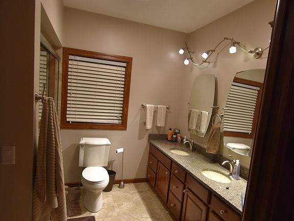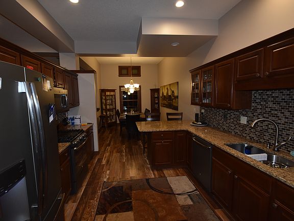 Four bed room and three bathroom end unit townhouse located in north Fargo. Kitchen features cherry cabinets and laminate hardwood floor. All new kitchen appliances in 2016 included. Main floor features master suite with walk in closet and attached bathroom. One additional bedroom on main floor. Living room features gas fireplace with remote and many windows. Updated main floor bathrooms and heated floors.