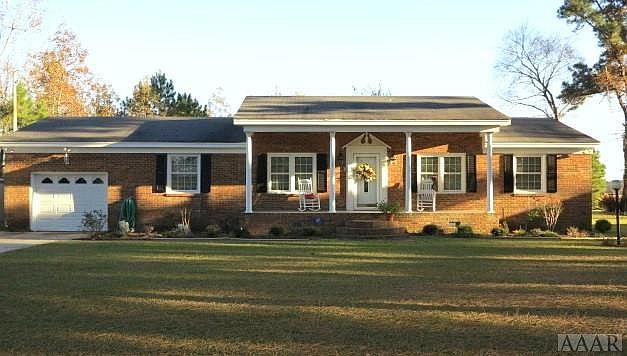 This beautiful ranch brick home is conveniently located for the Virginia commuter but far from Elizabeth City. Upon entering the home you will find yourself feeling right at home. The living room features hardwood floors and leads to the dinning area. The updated kitchen features granite countertops, tiled backsplash, and stainless appliances. The den's focal point is a cozy fireplace with electric logs. Hall bath has been updated to feature double bowl vanity and tiled shower/ tub.