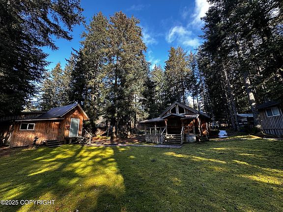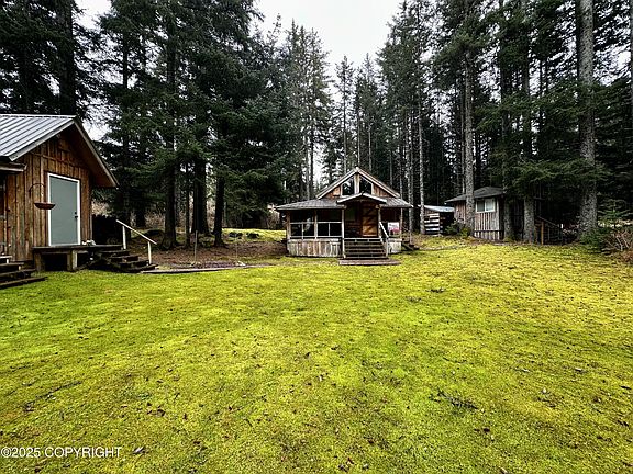 Imagine stepping into a world where nature whispers your name. This cozy Alaskan cabin, nestled deep in an enchanted forest, is calling you home! Picture yourself on nearly 3 acres of pure magic, surrounded by towering mature Sitka Spruce trees, wild blueberries and salmonberries bursting with flavor to enjoy in the summer months, and a sprawling lawn that's yours to claim.This isn't just a property; it's a sanctuary where every sunrise feels like a gift. The cozy one-bedroom cabin wraps you in warmth with its inviting living room, handy half bath (toilet & sink). The kitchen's custom cabinetry is ready for your culinary adventures and is fully outfitted with most everything you need from dishes, cutlery to pots and pans! The majority of linens and furnishings will remain, most everything stays, so all you need to bring is your suitcase and a sense of wonder! Up above the kitchen, you'll find a spacious loft with a queen bed that awaits your guests, offering them a treetop retreat they'll never forget. This loft overlooks the living room on one side, and the kitchen on the other with windows out over the lawn into the woods! Step outside onto the wraparound deck, your new favorite spot to sip morning coffee, host friends under the twinkling lights, or tinker on a project while the forest hums around you. Need to stay warm? The wood stove inside is your cozy companion, with a shed brimming with firewood just steps away. The seller has made it so easy for you, a clever enclosed entry doubles as a "wood room," letting you bring in logs without a hassle, keeping your fires roaring all winter long. Now, let's talk about the charming bathhouse, a little 80 sqft haven of its own, with a warm shower, a lovely vanity, ample dressing space and all the coziness and privacy you could want! In that same building, entering from the other side, you'll find the approximately 50sqft laundry room and well house, all seamlessly connected to the septic system. The well has always delivered crisp, abundant water! Attached to this space is a shop/garage that's a dream for any adventurer. With almost 290sqft of space, this garage has plenty of room for a small car, 4-wheelers, kayaks, snow machines or even a log splitter, all secure under cover. With built-in tool benches, it's begging to become your dream workshop. Down by the creek, a two-part 160sqft (approximately) structure adds even more allure: one side offers spacious storage, while the other once a sauna could be transformed back into a steamy retreat or kept as extra storage for your outdoor gear. Around the front of this building you'll notice a large and secured dog run for your furry family members! And speaking of practicality, a huge woodshed sits right outside the back door, ensuring you're always ready for those chilly nights. In the summer of 2024, a fantastic 10'x20' single carport was built on the property, which includes an additional 5'4" x20' bay perfect for sheltering your skiff, 4-wheelers, or anything else you want to keep safe from the elements. At the top of the driveway, where it meets Jakolof Bay Road, there's a massive, sun-drenched clearing just waiting for your vision whether that's a new garage, another structure, or a space to park your toys. And for those with a green thumb, a greenhouse frame sits in a sunny spot, ready to nurture your gardening dreams. The cover, though removed for winter is available when you're ready to garden! This property isn't just a home; it's a lifestyle! One where you're surrounded by nature's embrace, with every detail thoughtfully designed for your comfort and joy. Come see it for yourself, and let this forest retreat steal your heart!