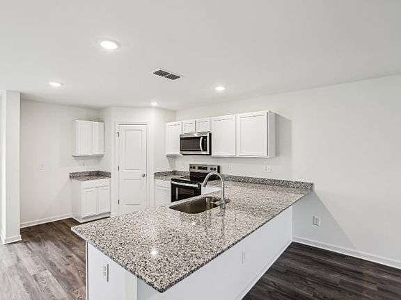 Welcome to the our Dupont floor plan. This spacious two-story floor plan offers a blend of comfort, versatility, and style. The open-concept kitchen, dining, and family areas provide a seamless space for everyday living and entertaining, complete with stainless steel appliances, white shaker cabinets, and granite countertops. On the main floor, you'll find a bedroom and full bath. Upstairs, the loft offers a flexible space for a game room, media area, or second living room. The private owner's suite includes a bathroom with dual vanities and a large walk-in closet. Two additional bedrooms, a full bathroom , and a convenient upstairs laundry room complete the second floor. Select homesites include unfinished basement. Basement floor plan features, such as steps to front entry and egress window location, are specific to homesite. Please see sales consultant for details.