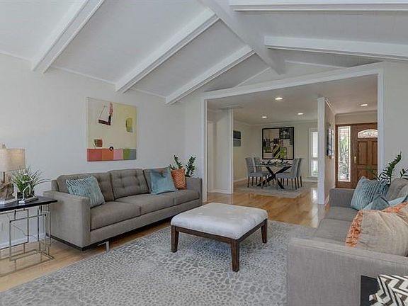 Impressive home for the executive on a quiet cul-de-sac. Updated and immaculate. Show-stopping living room. Fireplace in family room. Formal dining room or office. Gourmet kitchen with gas cooktop. Granite countertop. Beautiful wood floors and oversized windows. Four bedrooms. Two Bathrooms. Central air conditioning. Large patio makes grilling fun. Solar- and gas-heated sparkling pool and spa. Peaceful and calming backyard wrapped in redwood trees. Easy walk to top-rated schools: Oak, Blach, and Mtn View High. Easy access to freeways and transportation.