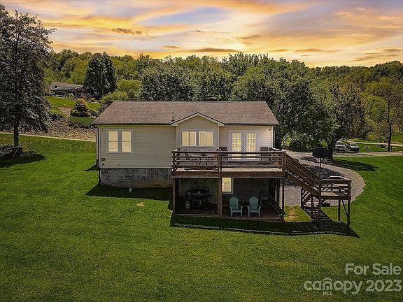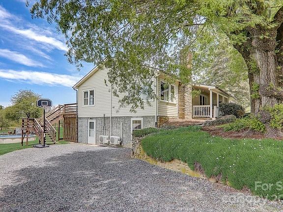This incredible home offers a spacious living room, 2 bedrooms, and 2 full bathrooms WITH 2 BONUS FLEX ROOMS that are located in the finished basement. Enjoy the trees and pasture views from the back deck and patio areas. The above-ground pool is ready for you to splash around in it this summer and the fire pit is ready for you to relax, entertain, and make joyful memories with your family and/or friends. You will not want to miss out on this incredible yard and entertainment space. The kitchen features butcher block countertops. The rustic farmhouse bedframe and vanity with lights are included fixtures with the home. The large walk-in closet in the primary bedroom also serves conveniently as the laundry room. The house comes with two sheds that can be used as extra storage and/or keep your car, boat, ATV, etc. protected from the weather. Your Western North Carolina home is ready for you to make your own. Located approximately 25 minutes from Asheville and 18 minutes from Waynesville.