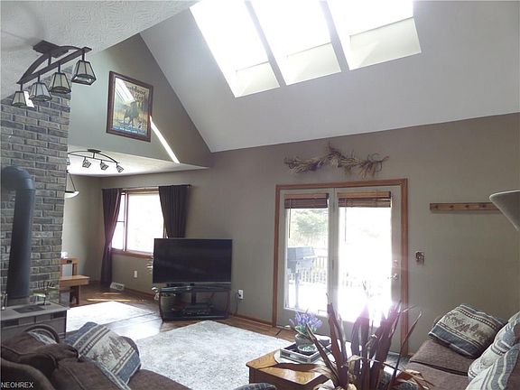 Welcome home to this beautifully maintained custom-built home on 1.88 acres in a great location! The wraparound front porch, tiered deck with seating and patio are perfect for relaxing or entertaining. Vaulted great room with skylights and wood stove with brick floor to ceiling chimney. Gourmet kitchen with center island and opens into breakfast nook with hardwood floors. First floor laundry room, master bedroom and full bath. Two additional bedrooms and full bath on the second floor. 2+ car garage and storage shed. Gorgeous wooded views! Call today!