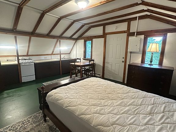 Up for rent, a studio apartment on the second floor of a renovated barn built in the 1800s. Located up and old dirt road in the hills of Bethel VT sitting on approximately 100 acres with 180 degree view of the beautiful Green mountains with an approximate 15 minute drive to the Vermont Law School, sits our farm that has been in the family since the 1950s. Over the years many renovations have taken place allowing us to house Law students since the early 90s. The newest renovation includes the studio in this listing. Approximately 280 Square feet the studio comes furnished with a bed, wardrobe, nightstands, table and chairs. A four burner gas stove, refrigerator and sink are the appliances within the studio. A bathroom and Shower (In their own separate rooms) are to be shared by both studios on the second floor, as well as a common hallway and staircases. The other studio apartment is currently being occupied by a female renter and would prefer another female to rent the other studio with the shared bathroom. The apartment is non smoking but a designated patio can be used for recreational use. We are looking for somebody light footed and quiet as the upstairs is very audible from bellow. Pets are at Landlords discretion. The monthly rent is $950 dollars with an initial security deposit of $500 dollars. This includes gas, heat, electric, trash removal, snow removal, parking, and laundry. High speed internet is divided by number of occupants in the building. There is parking available for 1 vehicle and space for temporary visitors. Storage is available for other personnel belonging if needed. Tenant will have access to all 100 acres of fields and woods as well as a pool/bar room and outdoor patio recreational area. This being a farm there are occasional loud activities (Tractors, Excavators, UTVs extra) that take place throughout the day to day. It is also recommended that a car with 4x4, all wheel drive or good winter tires as the road in the winter/ mud season can be challenging. If you are interested please reach out and I will send you a renters application and date for an open house. Thank you for your interest!