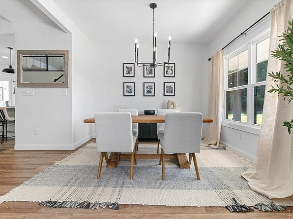 This sleek new white and black farmhouse sits on 5.65 acres and offers 2,261 sq. ft. of open-concept living with soaring ceilings, beaming natural light, and breathtaking mountain views. Featuring 4 bedrooms, 3 full baths, and a stylish loft, the home blends comfort and modern design. The stunning primary suite boasts a spa-like bathroom, while the wrap-around porch and custom putting green create the perfect outdoor retreat. A fresh, elegant home where farmhouse charm meets mountain serenity.