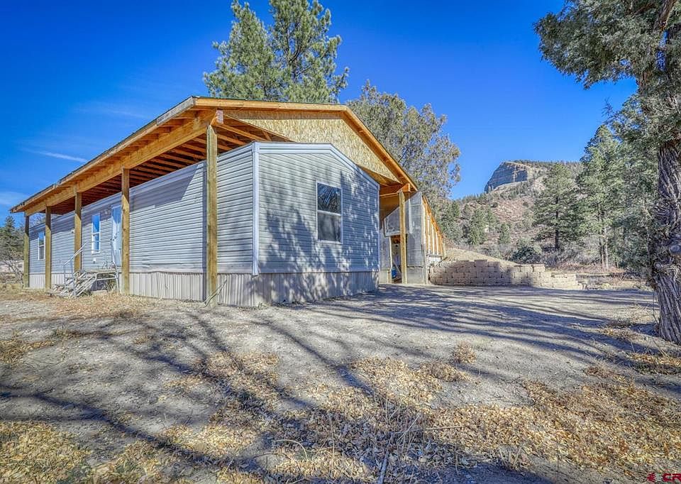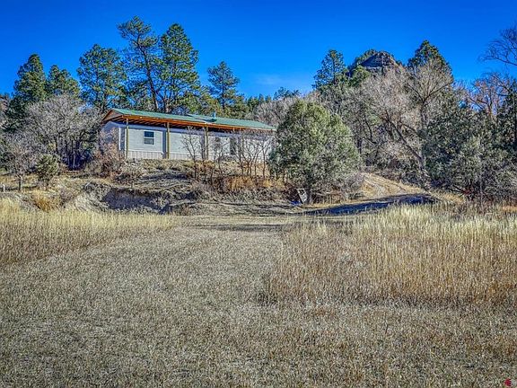 This unique home sits on one acre in a beautifully wooded area just outside of Pagosa Springs. This 3 bedroom 2 bathroom home also has an oversized carport. Inside you can stay warm either with the wood stove or forced air. This property offers amazing views of the mountains and valley. This pretty piece of land has a knoll at the front with pines and oak brush. It is also adjacent to the Greenbelt and Open Space. No HOA. Only minutes away from National Forest for hiking, fishing, etc. and Pagosa Springs for dining, shopping, hot springs, and more. Make this your home or your Colorado mountain get away. With really good cell phone service.