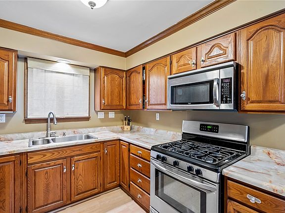 Remarkable traditional Mt. Lebo home w/ tons of quality & character throughout. Great off street parking area around back in addition to a 1 car garage & driveway. HUGE patio w/privacy to enjoy the summer nights. Solid wood cabinets,great counter space, lg eat in area & tremendous potential for expansion of this space. HUGE dining & living room w/tons of natural lights, living rm w/fireplace & doors to the exterior. Original hardwoods throughout most of this gem. Beautiful master bedroom w/full bath,2 additional large bedrooms w/great closet space, retro main bath, ENORMOUS finished attic that is 4th bedroom or potential playroom (as shown) w/its own heating & cooling. AWESOME media room (finished game room) w/nook(additional room) for a desk or storage, exercise room (own mini split) or whatever your heart desires, additional full bath, wine cooler & laundry finish off the lower level. FABULOUS location off Washington Rd. SUPER close to Galleria, South Hills Village mall & Pittsburgh.
