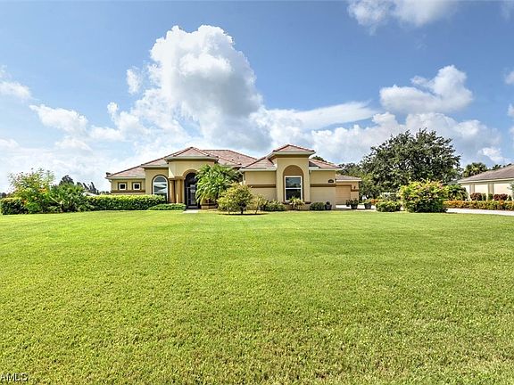 Located in the sought after community of Remington Oaks centrally located in Buckingham’s acreage estate community this 4 Bed/3 Bath home w/ 3 car attached garage & 1 car detached garage resides on a beautifully manicured 1 Acre lot w/ abundant landscaping and beautiful curb appeal. Meticulously maintained since its construction in 2008 w/ upgrades to include hurricane rated windows and shutters installed in 2020 and new gutters, soffits & tile roof ridge caps replaced in 2019, Split AC system both newer units 2023 (3.5 ton) & 2020. This grand formal floor plan features volume/tray ceilings, formal living and dining room, 8 ft doors and a 860 sq. ft. covered lanai perfect for entertaining. The chef will love the centrally located kitchen which features newer appliances, island, double oven, granite countertops and a walk-in pantry. The master bedroom with en suite bath and access to the lanai is the perfect place to unwind with soaking tub, dual vanities and walk in shower. The HOA fees are only $450 per quarter & include cable. Zoned AG2 with county taxes only. Home is on city water and septic and a full yard irrigation is run off a well system with garden area. PRICED TO SELL!
