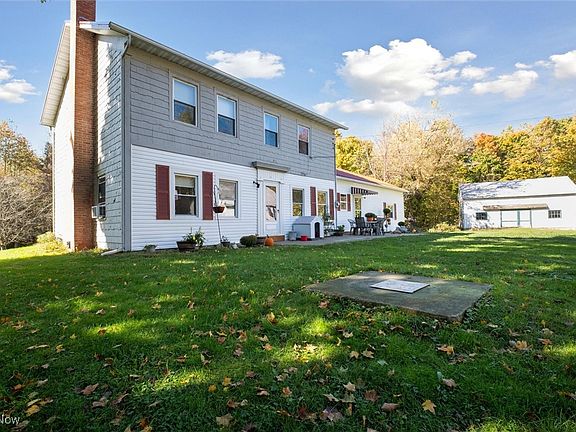 Don’t miss out on the opportunity to own this gorgeous 4 bedroom, 2 bath Colonial home on a quiet dead end street in the desirable city of Wakeman. This 7.59 acre serene property offers versatility, serenity, nature, possible development and loads of opportunity! A beautiful combination of woods which lead down to a ravine with a creek, numerous barns, garage/workshop, plenty of storage space, tranquility, and peaceful star lit nights. The upstairs makes an excellent in-law suite with its own living room, full bath, and kitchenette. Newly installed carpet in the living room, new hot water tank in 2022, new metal roof installed in 2024, Septic tank inspected in March 2024 and propane furnace replaced in 2020. Enjoy this sizeable basement that is the perfect canvas to create your own second living space. This home is in a quiet neighborhood and is completely turn-key. Schedule your appointment today!