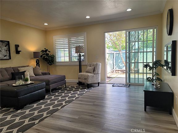 Spacious, open concept and totally remodeled 3 bedroom (used to be 4) single-story end unit townhome with open kitchen and living-room looking out a privacy yard with fruit trees. The home is totally remodeled with new kitchen, new bathrooms with jet tub, new flooring, recess lighting, crown moldings, double panel windows with shutters,... and is very secluded in gated community with pool, jacuzzi, dog park, club house,... The complex is very central from schools, supermarkets, restaurants, freeways,... Such a gem! YOU CANNOT FIND ONE LIKE THIS IN THIS AREA FOR SUCH PRICE. Come, see, and start a contract before it is gone. Call today!