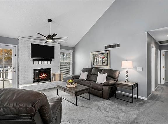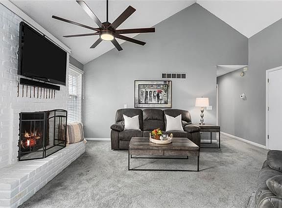 - Features: Carpet, Ceiling Fan(s), Fireplace