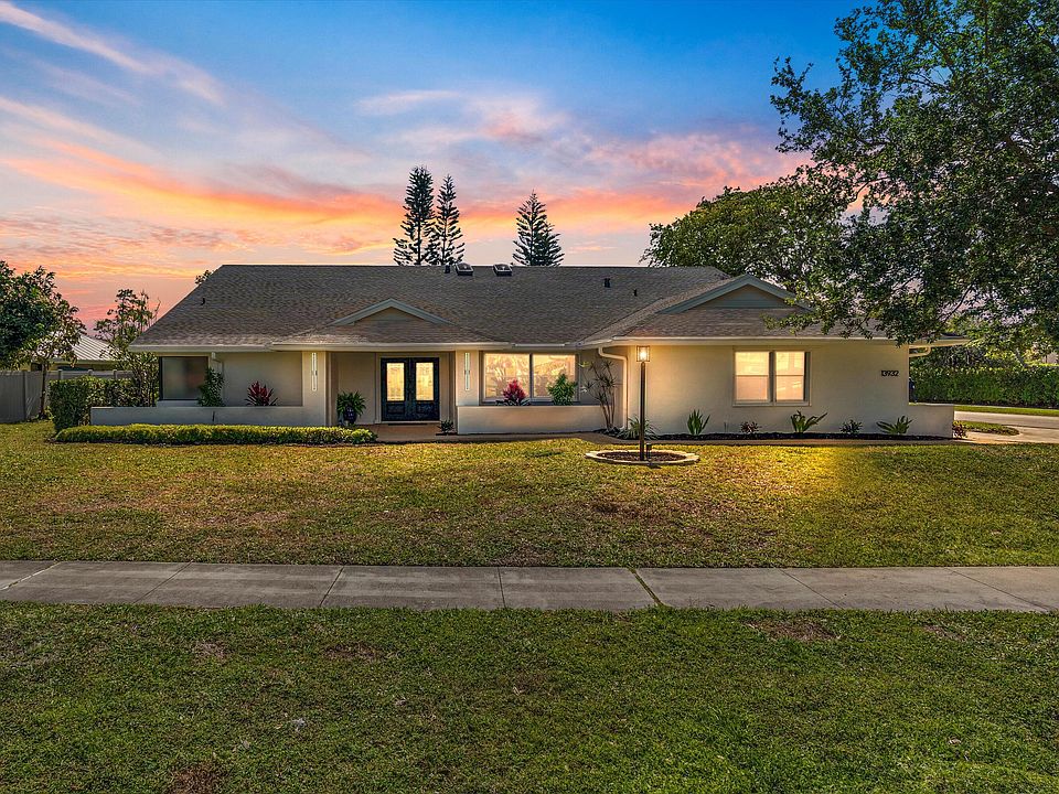 Discover your dream home in the desired Sugar Pond neighborhood! An upgraded 4 Bed, 3 bath home w heated pool & spa, spacious bedrooms, and a beautiful kitchen/ stainless appliances. Save on insurance w NEW ROOF NEW GARAGE DOOR & NEW FRONT DOOR. The luxurious master suite includes an upscale bathroom with an upgraded shower system & a pampering soaking tub, plus a custom walk in closet. Formal dining room, family room, 2 car garage floor just refinished. Windows have an easy to use electrical or manual roll down hurricane shutters. Families who like to host will enjoy a covered patio and a fully fenced backyard with lush landscaping & fruit trees, overlooking the water view! The split floor plan is ideal for families. No HOA fees, close to shopping, dining, great schools, & equestrian eve
