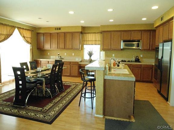 Great Cul de Sac home in the City of Eastvale, offers five spacious bedrooms, and Three full baths. One bedroom downstairs, and downstairs bathroom. Four bedrooms upstairs include the Master suite with spacious bath, and walk in closet, lots of windows. All bedrooms have walk in closets.\r\nFormal Living room with vaulted ceilings, and Separate formal Dining room. Spacious Family room offers a media niche area, and built in speakers. Family kitchen has lots of upgrades, granite counters, stainless steel appliances including double ovens and microwave, lots of cabinets (dark wood), and a walk in pantry, with storage space. Upstairs Laundry room with sink. 3 car Tandem garage, very large back yard with countless possibilities. Walking distance to community park. Close to schools, and conveniences. Agents please see remarks for showing. Thank you. Brokered And Advertised By: Keller Williams Realty- Norco Listing Agent: Diana Morales