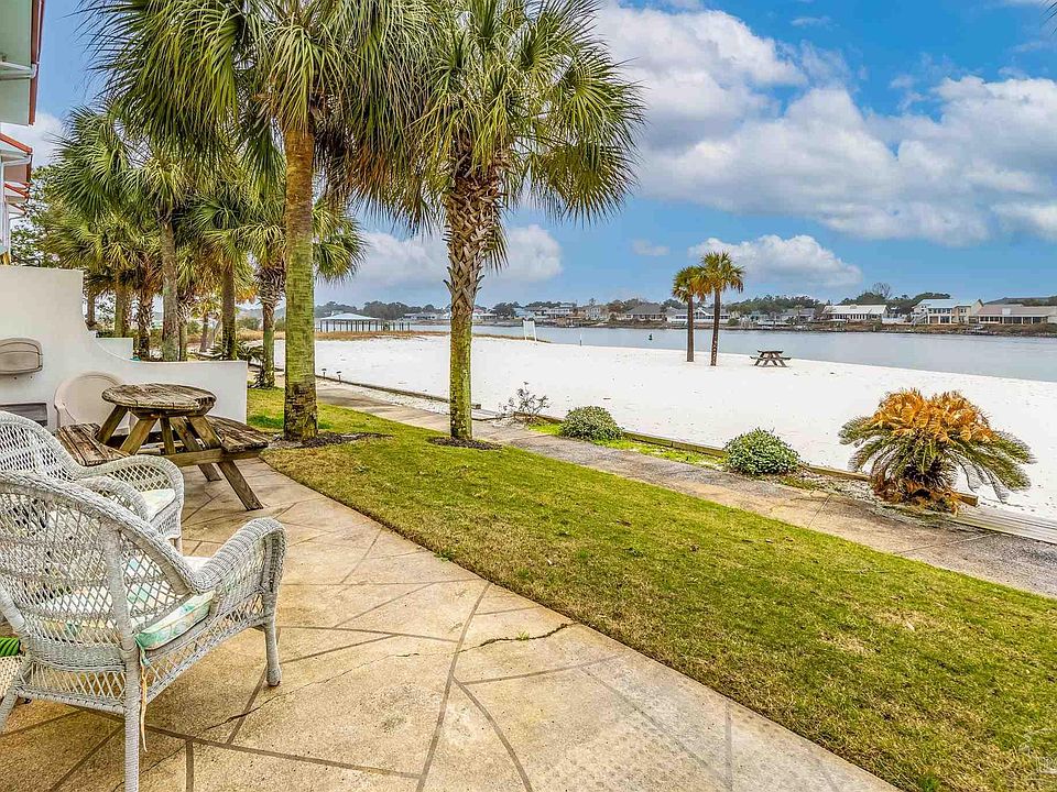 This colorful large, bright open concept waterfront townhouse, is located one mile from the Gulf of Mexico on the private white sugar sand beach on the gorgeous barrier Island of Perdido Key. Watch the boats glide by your home and splashing dolphins from the large first floor private outdoor patio. This unique and spacious three bedroom luxury townhome has two en suites built baths with a half bath on the open first floor living area. Panoramic views of water and a sugar sand beach located right out your back door. Perdido Key is 20 minutes from Pensacola with lots of activities for family and friends. From this waterfront unit you can quickly reach the emerald green waters of the Gulf of Mexico. and is a true boater and fisherman's paradise with its calm Intracoastal Waterway. Quality Built with ICF block construction, 12ft ceilings, open and bright floor plan, The kitchen has an abundance of storage, laundry room on the first floor,, 3 large bedrooms on the 2nd floor, The large master suite has spectacular view of the Intracoastal Waterway with a large walk in closet ,en suite with double marble vanity, large tub and separate shower. The other two bedrooms are large rooms with a shared bathroom. This unit also has extra storage in the one car garage. Has two car driveway with guest parking. The roof and HVAC have been recently replaced. This gated community has a pool and hot tub, workout room with sauna and steam room, meeting room and private beach. This unit is about 5 minutes to the Gulf of Mexico, shopping and resturants. If a second home or investment this is the spot for you. The HOA is 440.00 a month and it covers, cable, Internet, trash, amenities and landscaping. This 57 unit luxury neighborhood is a must see. Call today for your viewing or for more information on this piece of paradise.