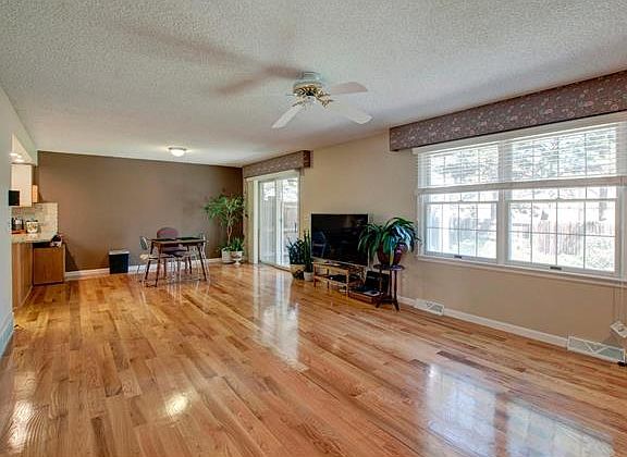 Well-cared for and updated Sableridge town home. This conveniently located 2-story home offers a functional and open floor plan. Entry welcomed into living room with gleaming hardwood floors & a wood burning fireplace accented with a brick surround, hearth, wood mantel, built-in shelving and cabinets. The renewed kitchen feature granite countertops, decorative tile backsplash, stainless steel appliances and breakfast bar. 3 bedroom rarity on the upper level. Considerable storage in all bedrooms with either an oversized or walk-in closet. One bedroom offers a built-in desk and the master complimented by a private full bath with a Whirlpool tub. Finished basement includes an updated ?? bath and a remodeled rec room ready for a home theatre system which includes pre-wiring for surround sound, a large wall niche for electronic equipment and the added bonus of an electric fireplace. Fenced backyard w/covered patio & garden area. Maintenance Free living with no yard work or snow removal.