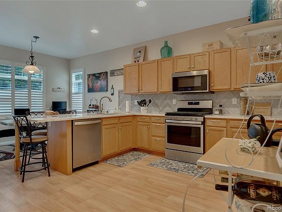 BACK ON THE MARKET, BUYER UNABLE TO SECURE FUNDS. THIS HOME LOOKS AND FEELS SPECIAL THE MOMENT YOU WALK IN. UPGRADES INCLUDE PLANTATION SHUTTERS, QUARTZ COUNTERS, AND CHIC BACKSPLASH. THE MODERN KITCHEN HAS GAS STOVE, EAT IN NOOK, AND EXTENDED COUNTER WITH BAR STOOLS, ALLOWING FRIENDS AND FAMILY TO CONVERSE WITH THE CHEF. THE LIVING ROOM AND DINING ARE STUNNING WITH HIGH CEILING, GAS FIREPLACE AND NEW FLOORING. GUEST BEDROOM, FULL BATH AND LAUNDRY ARE CONVENIENTLY LOCATED ON MAIN LEVEL. THE MASTER RETREAT IS SEPARATE AND PRIVATE WITH SPACE FOR DESK, LIBRARY, OR ANY DESIRED PREFERENCE. THE MASTER BATH HAS 5 PC FIXTURES, NEW QUARTZ COUNTER, AND TILE FLOORING. THE EXTERIOR IS MAINTENANCE FREE, NOTHING TO WORRY ABOUT, JUST RELAX AND ENJOY THE VIEWS, CLUBHOUSE, INDOOR AND OUTDOOR POOLS, AND NUMEROUS WALKING TRAILS. HOA WILL NSTALL 6X8 PRIVACY WALL BETWEEN DUPLEX PATIOS IN NEAR FUTURE. LOCATION IS ONE OF THE MOST DESIRABLE AND BEAUTIFUL IN BROOMFIELD WITH ITS LUSH LANDSCAPING AND OPEN SPACE.