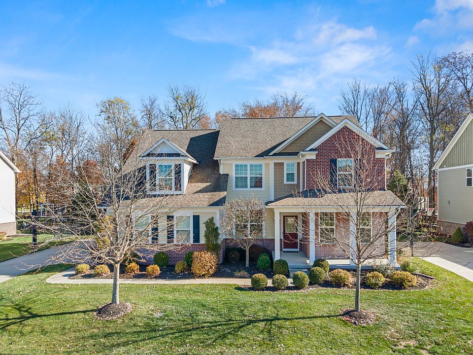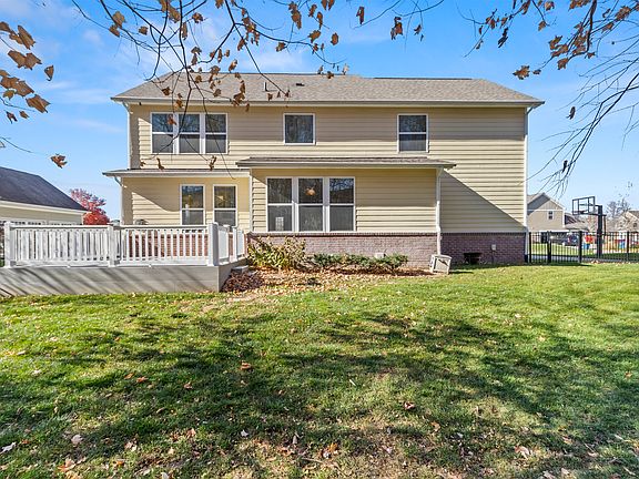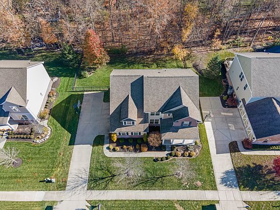 Beautiful move in ready home on private, tree lined lot! 5 Bedroom/3.5 bath home. Hardwoods throughout main level. Open concept Great Rm and Kitchen. Gas fireplace. Kitchen has granite counters, double ovens, s/s appliances, pantry and center island. Formal Dining Room and Breakfast Nook. Bonus tech space off the Kitchen. Main floor private Office. Large Entry with crown molding and wainscoting. Primary Suite has private bath with double sinks, tile shower and garden tub. Huge walk-in closet with built ins. Walk in closets in all upper-level bedrooms. Double sinks in 2nd upper-level Full Bath. Washer/dryer stay in upper-level Laundry. Finished Basement has bedroom, full bath, wet bar and huge rec/playroom space. Low maintenance LVP flooring in the Basement. 3 car garage with epoxy finish has extra space for bikes and storage. Full rear fence and low maintenance composite deck added in 2021 for outdoor living. HVAC and water heater new in 2023.