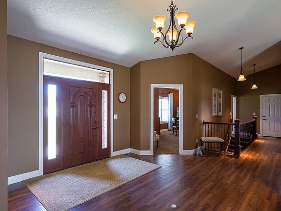 A magnificent home in a country setting with city benefits in Eagle Ridge Subdivision. This ranch estate boasts vaulted ceilings in it's open floor plan. Cherry cabinets fill the kitchen along with breakfast bar, separate eating and hearth areas. The granite countertops and built in serving buffet are perfect for those that love to cook or entertain. The grand master bedroom has a beautiful ensuite fit for a king (or queen). Guests will love the private quarters in the walk-out basement, this includes: separate living room, two bedrooms, kitchenette and bath. You can also enjoy entertaining in the basement with a large rec room, and a multipurpose room that could be used as a second office, craft room, exercise room or whatever your heart desires. The huge deck has the best view of the completely fenced and meticulously manicured .89 acre yard. And don't let the look of the garage fool you, this bad boy measures 40'x39' AND it's heated. It's sure to please any car enthusiast.
